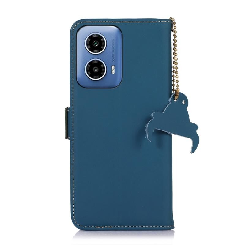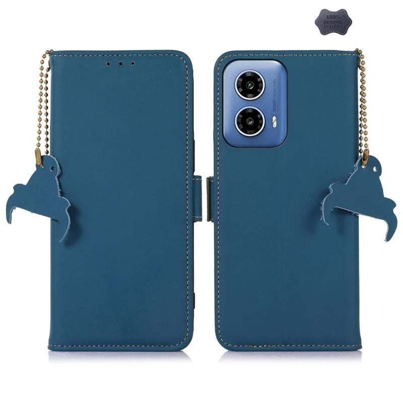 Θήκη τηλεφώνου από γνήσιο δέρμα με μαγνητικό κλείσιμο και προστασία RFID για Motorola Moto G34 (Μπλε)