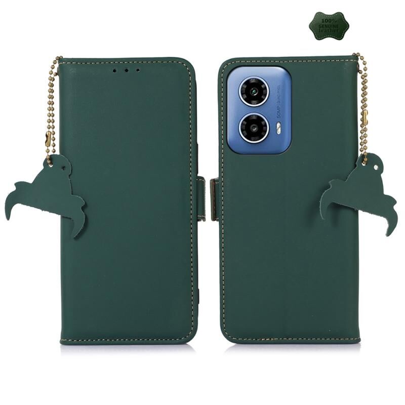 Θήκη τηλεφώνου από γνήσιο δέρμα με μαγνητικό κλείσιμο και προστασία RFID για Motorola Moto G34 (Μπλε)