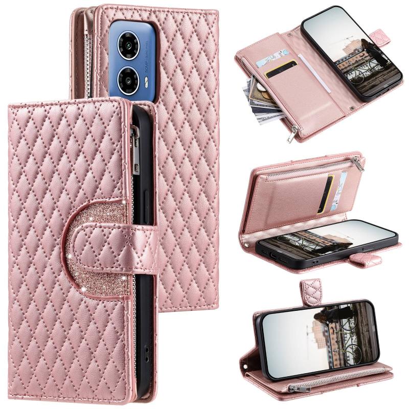 For Motorola Moto G34 Glitter Lattice Zipper Wallet Leather Phone Case(Rose Gold)