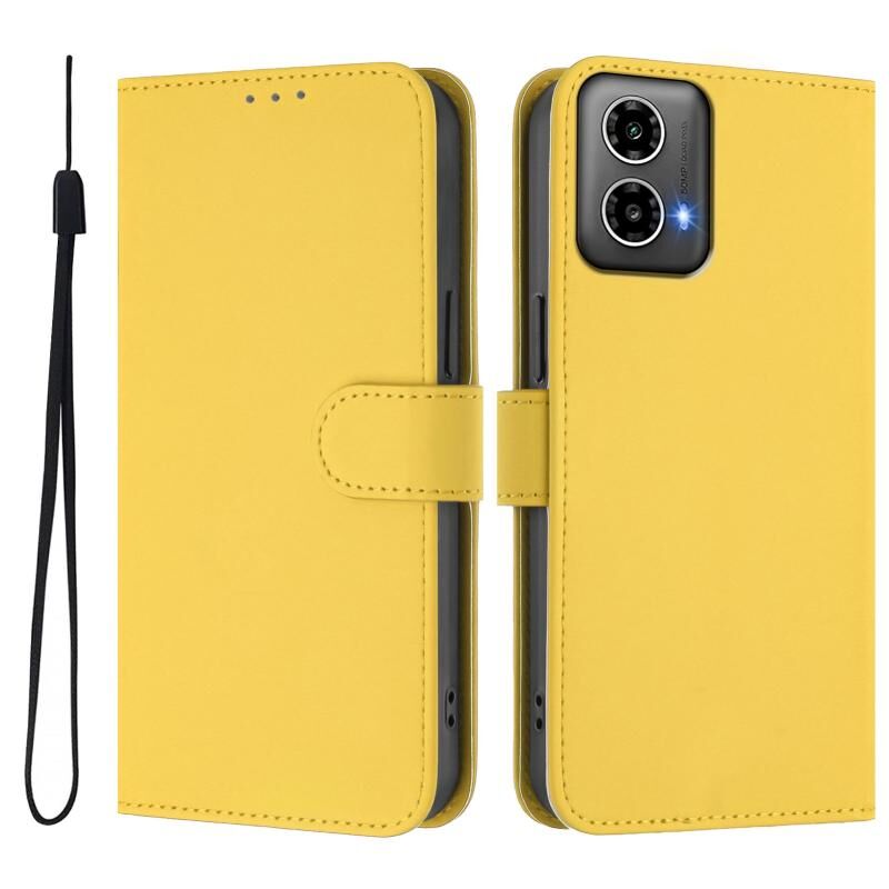 Για Motorola Moto G34 Global Skin Feel Solid Color Δερμάτινη θήκη τηλεφώνου με κορδόνι (κίτρινο λεμόνι)