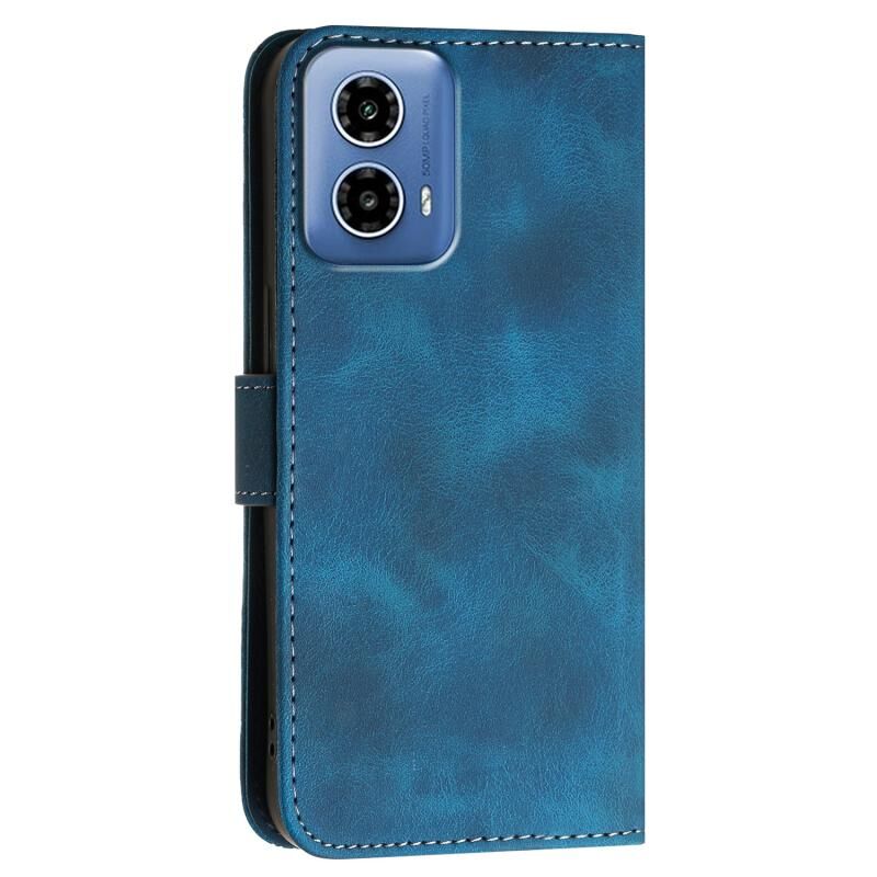Θήκη κινητού τηλεφώνου δερμάτινη με ανάγλυφο σχέδιο Grid Butterfly για Motorola Moto G34 με κορδόνι (Σκούρο Μπλε)