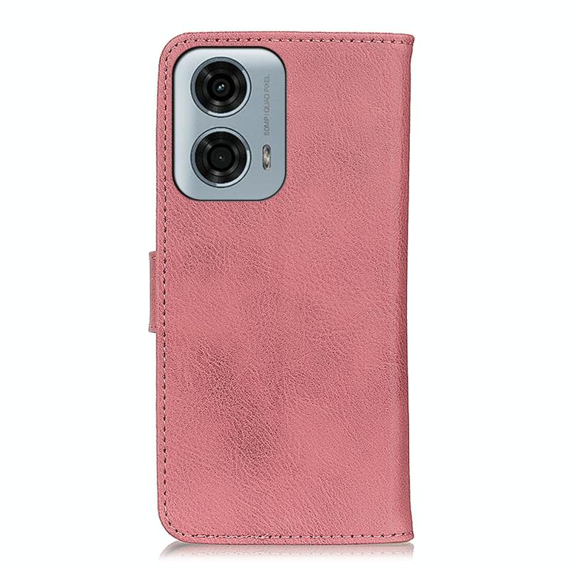Θήκη τηλεφώνου δερμάτινη αναδιπλούμενη με υφή δέρματος αγελάδας KHAZNEH για Motorola Moto G34 (ρόζ)