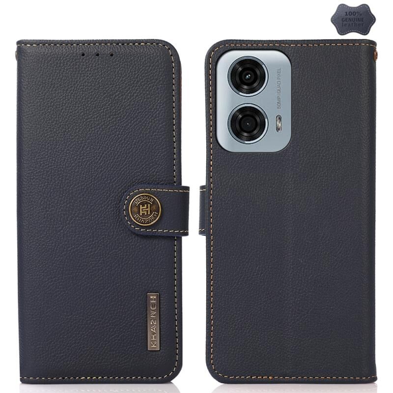 Θήκη κινητού τηλεφώνου Motorola Moto G34 KHAZNEH Custer από γνήσιο δέρμα με προστασία RFID (Μαύρο)