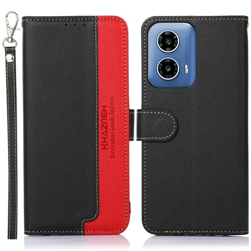 Θήκη κινητού τηλεφώνου Motorola Moto G34 KHAZNEH με δερμάτινη υφή Litchi και προστασία RFID (Μαύρο)