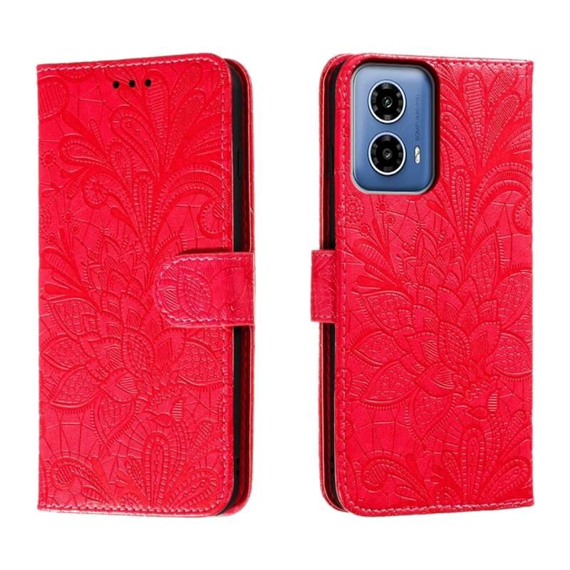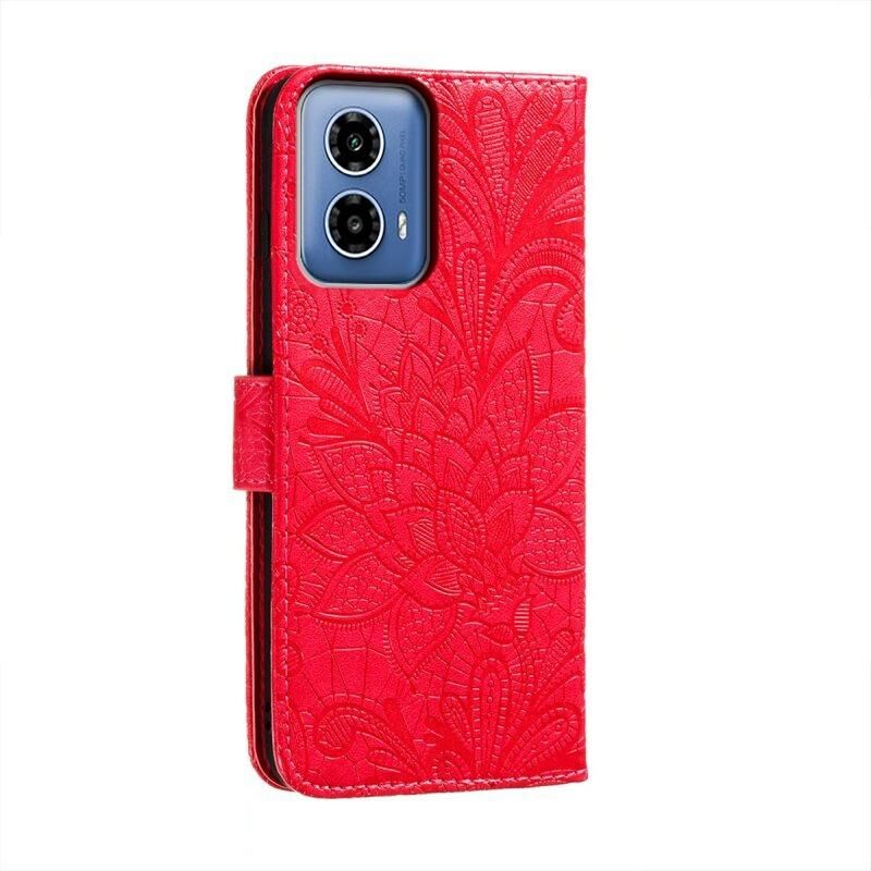 Για Motorola Moto G34 Δαντέλα λουλούδι ανάγλυφο Flip δερμάτινη θήκη τηλεφώνου (κόκκινο)