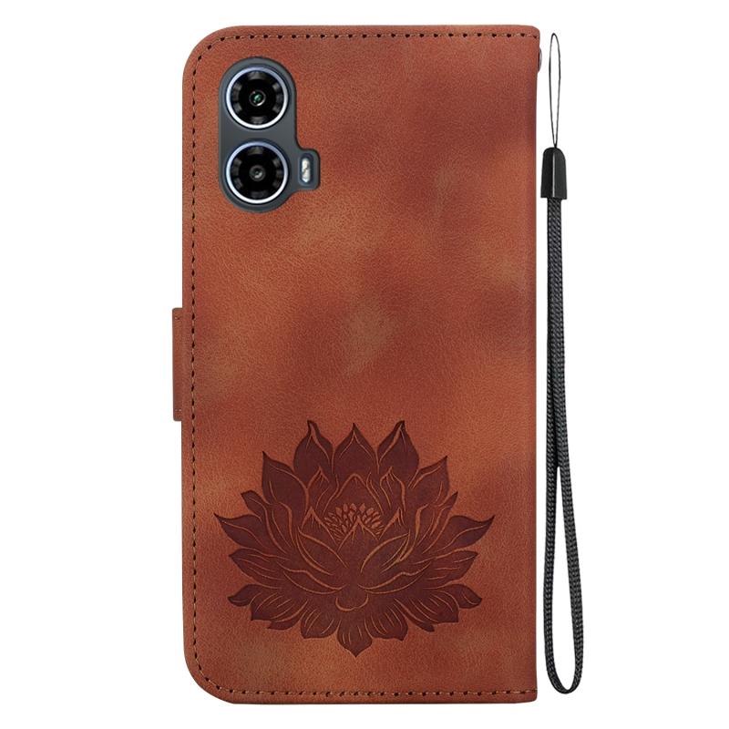 For Motorola Moto G34 Lotus Embossed Leather Phone Case(Brown)