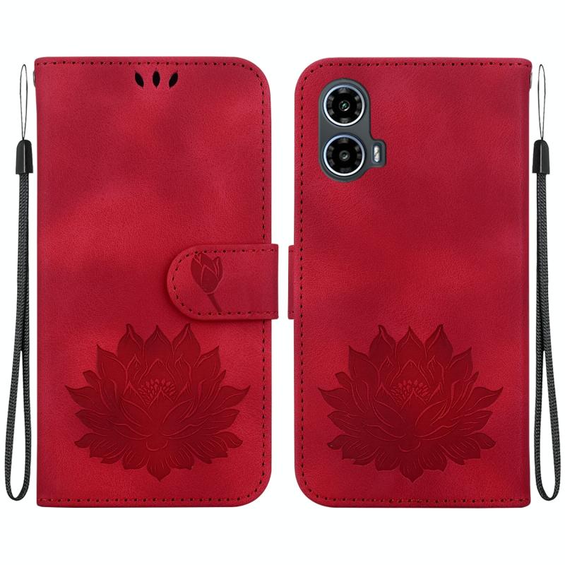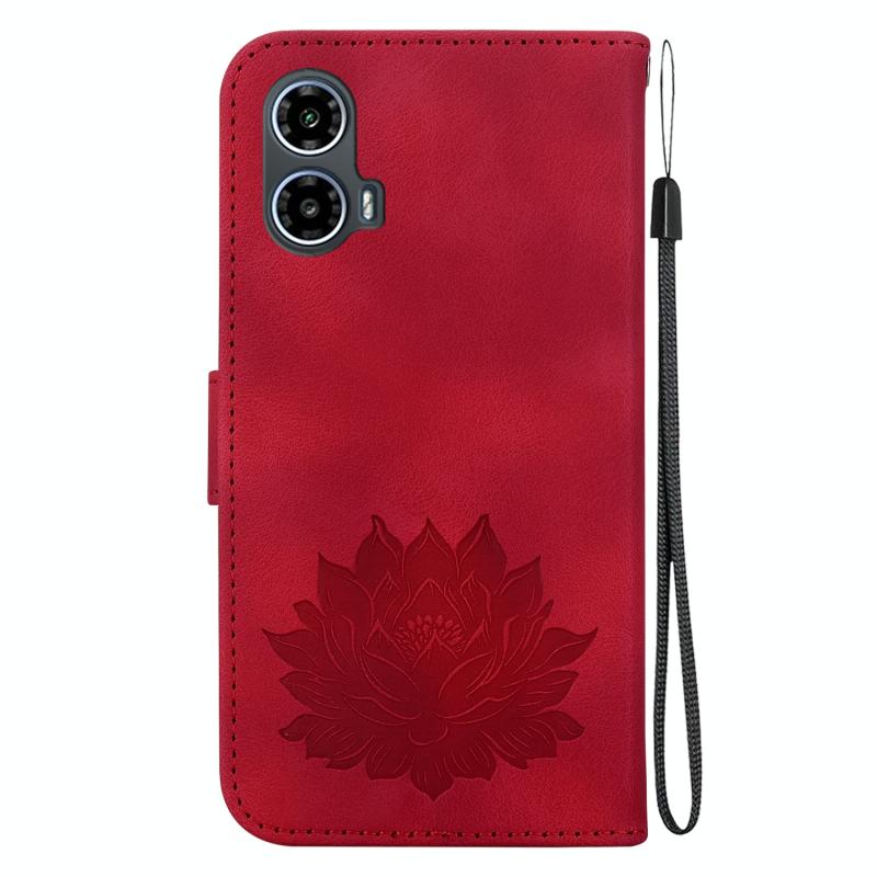 For Motorola Moto G34 Lotus Embossed Leather Phone Case(Red)
