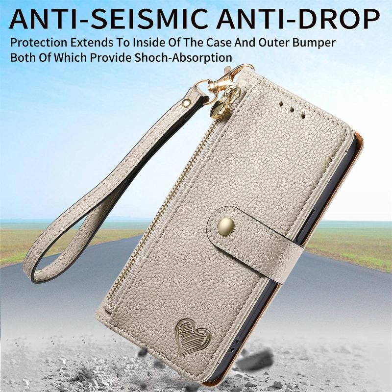 Για Motorola Moto G34 Θήκη Δερμάτινη με Λουρί και Φερμουάρ Love (Γκρι)
