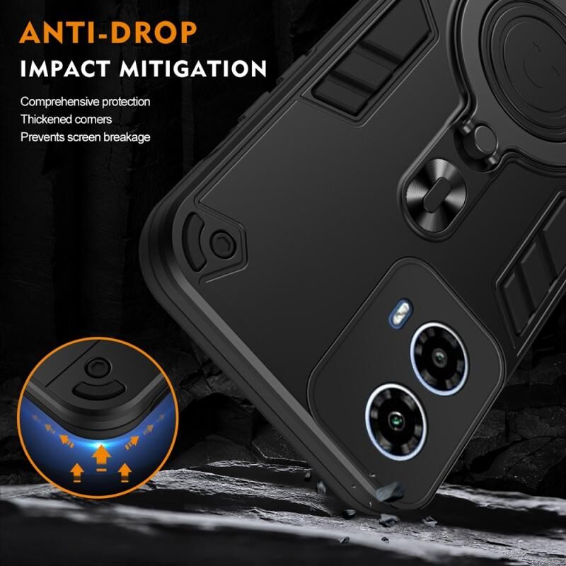 Για Motorola Moto G34 Μεταλλικό δαχτυλίδι 360 μοιρών περιστρεφόμενη θήκη τηλεφώνου PC Hybrid TPU (μαύρο)