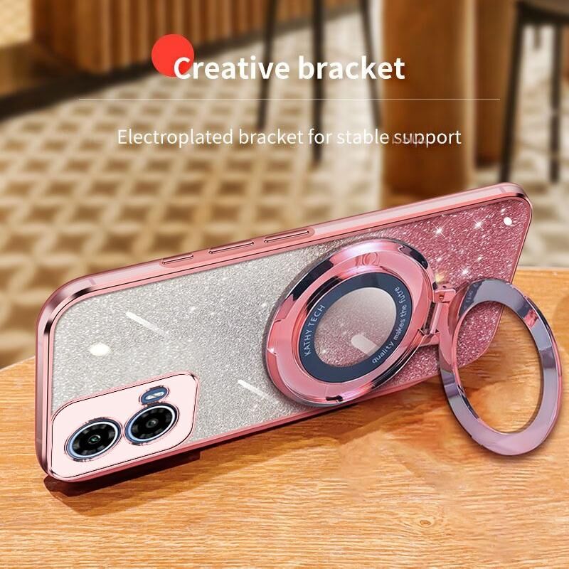Για Motorola Moto G34 Επιμεταλλωμένο βαθμιδωτή Glitter στρογγυλή θήκη TPU τηλέφωνο κάτοχος (ροζ)