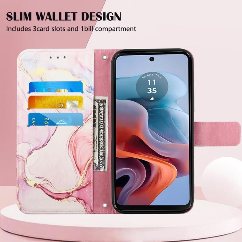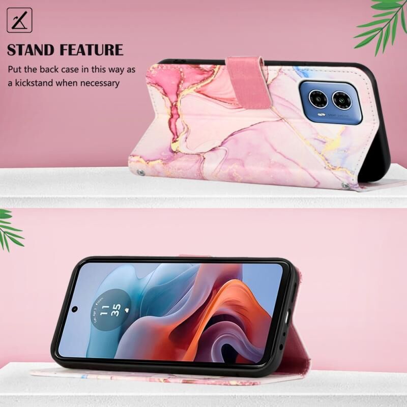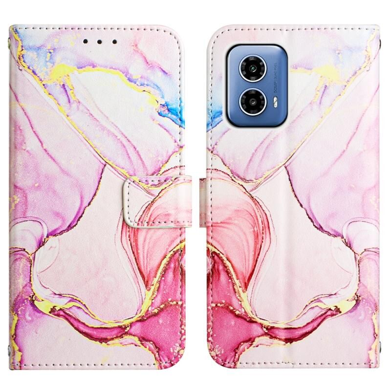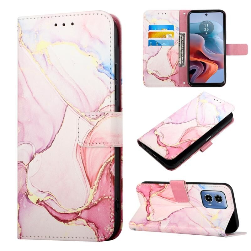 Θήκη τηλεφώνου από δέρμα με σχέδιο μαρμάρου για Motorola Moto G34 PT003 (Ροζ χρυσός)