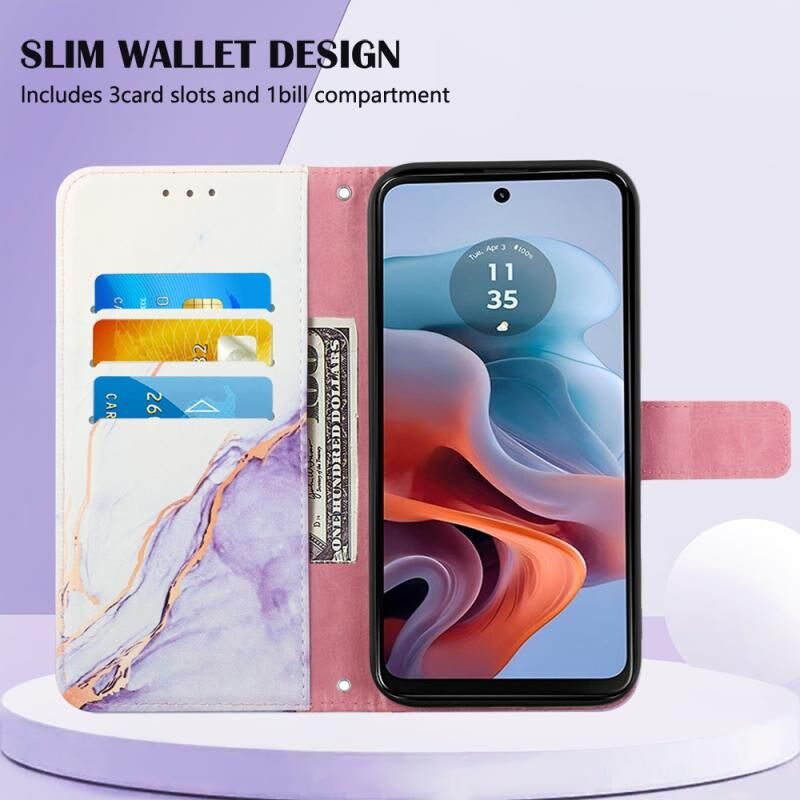 Θήκη τηλεφώνου από δέρμα με σχέδιο μαρμάρου για Motorola Moto G34 PT003 (Ροζ, Μωβ, Χρυσό)