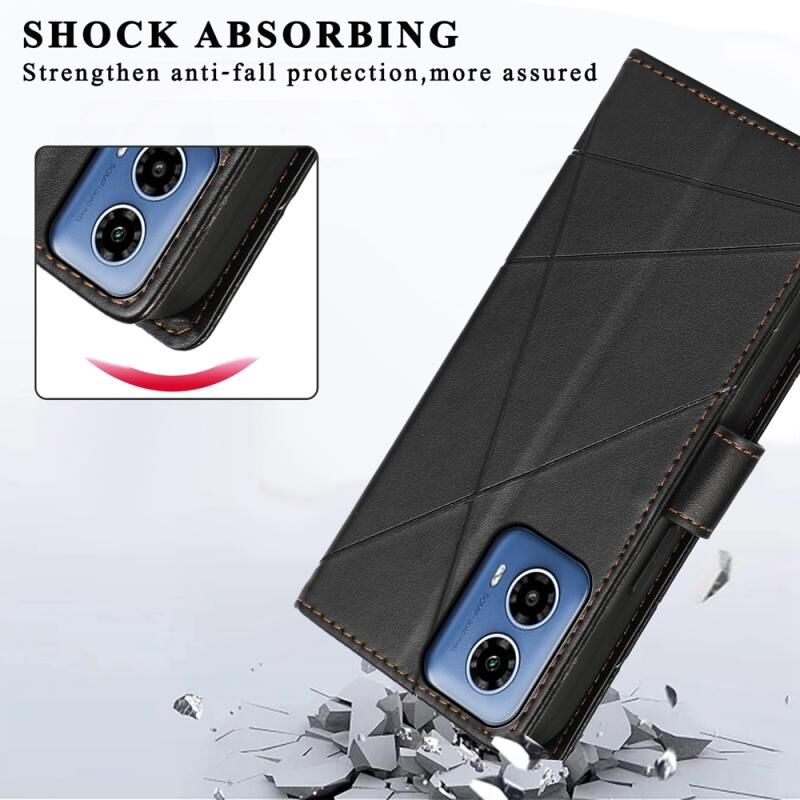 Θήκη τηλεφώνου για Motorola Moto G34 PU με ανάγλυφη υφή γνήσιου δέρματος (Μπλε)