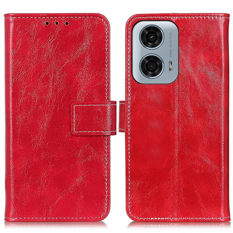 Θήκη τηλεφώνου για Motorola Moto G34 με υφή δέρματος Crazy Horse Retro (Κόκκινο)