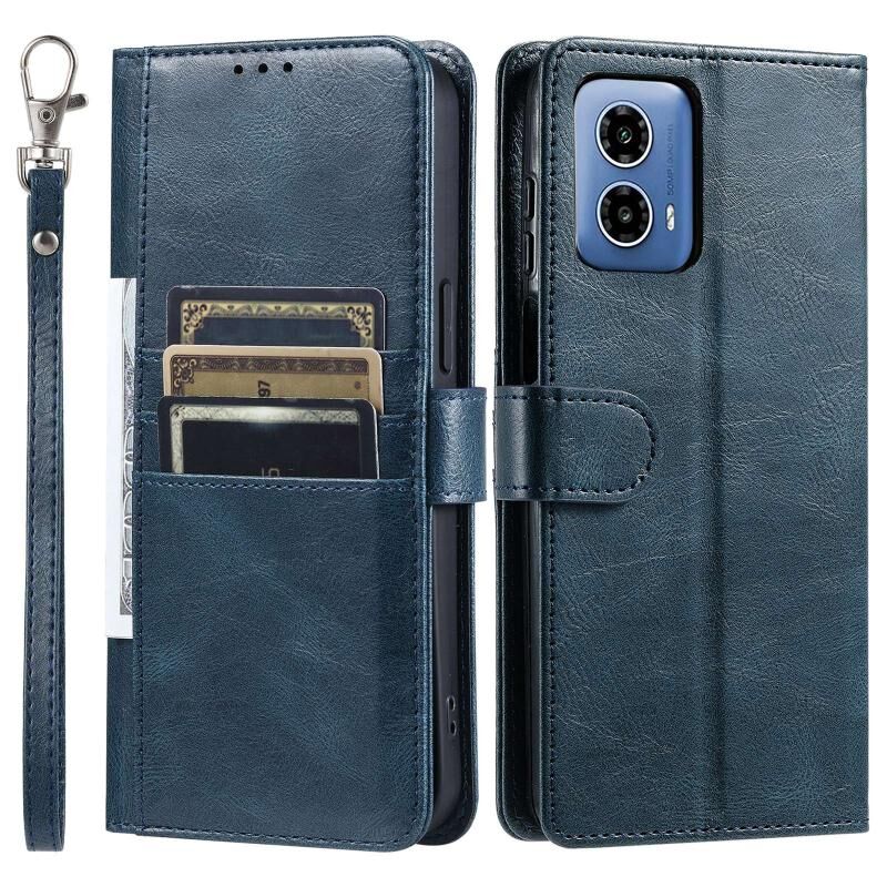 Για Motorola Moto G34 Απλή 6-Card πορτοφόλι δερμάτινη θήκη τηλεφώνου (Navy Blue)
