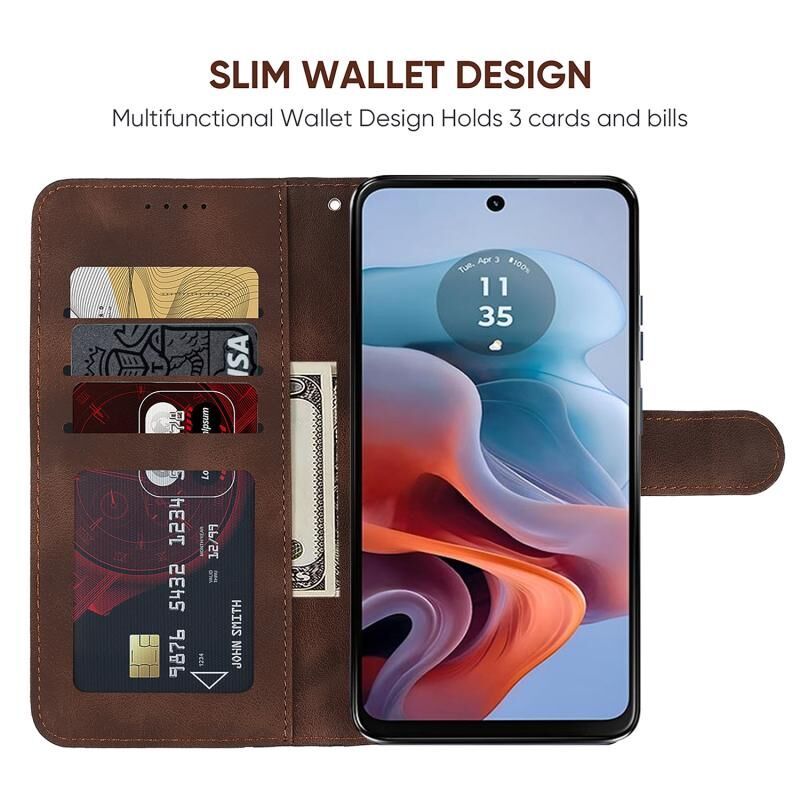 Για Motorola Moto G34 Skin Feel γεωμετρικές γραμμές δερμάτινη θήκη τηλεφώνου (καφέ)