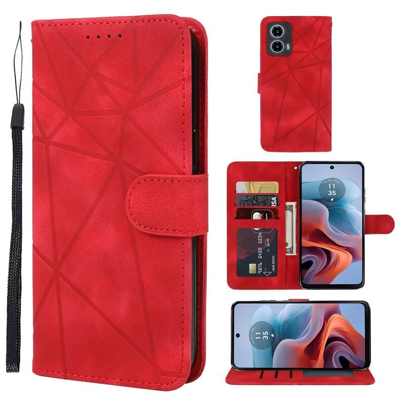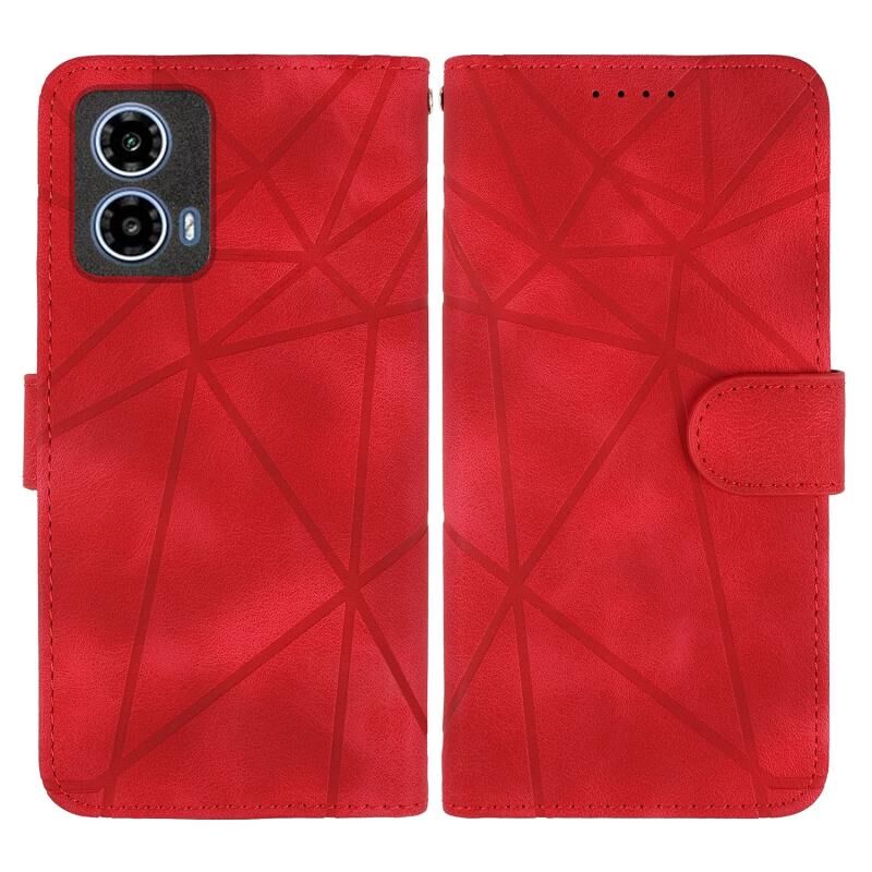 Για Motorola Moto G34 Skin Feel Γεωμετρικές γραμμές δερμάτινη θήκη τηλεφώνου (κόκκινο)