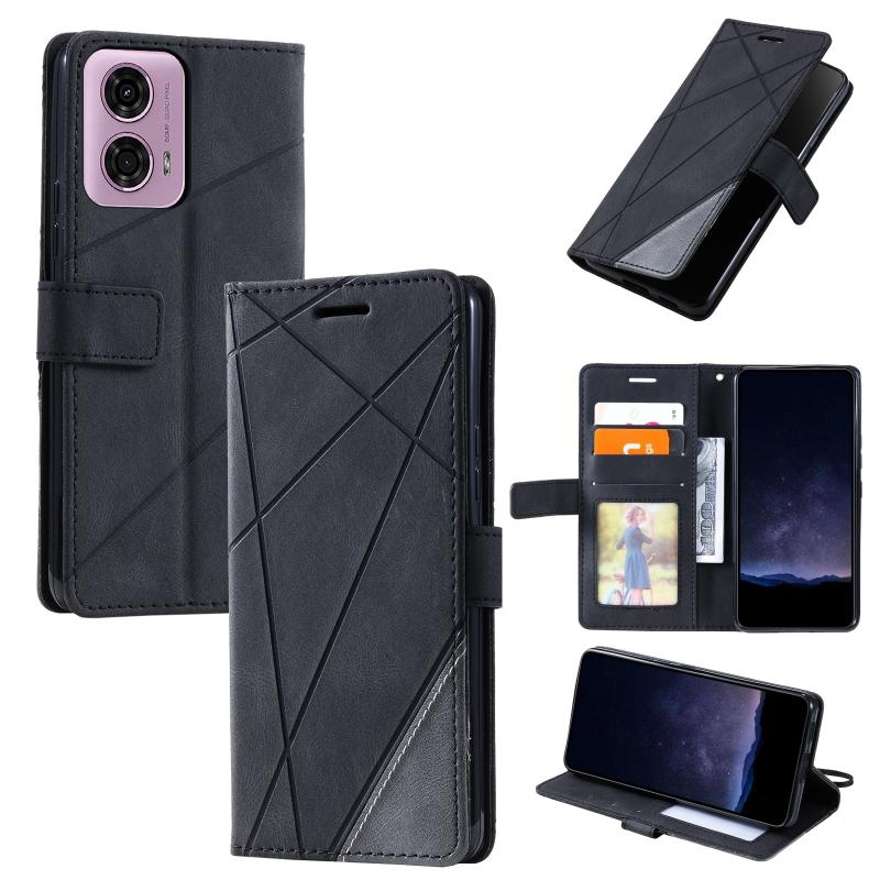 For Motorola Moto G34 Skin Feel Splicing Leather Phone Case(Black)