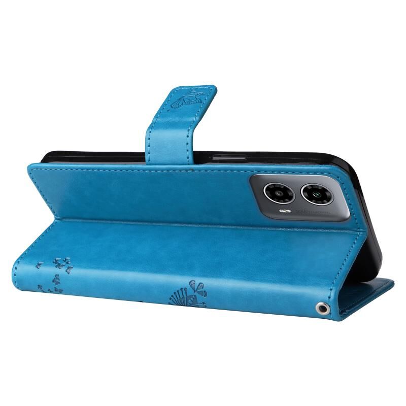 Θήκη τηλεφώνου δερμάτινη, τύπου flip, με ανάγλυφο σχέδιο δέντρου & γάτας για Motorola Moto G34 (Ροζ)