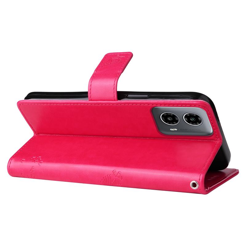 For Motorola Moto G34 Tree & Cat Embossed Pattern Flip Leather Phone Case(Rose Red)