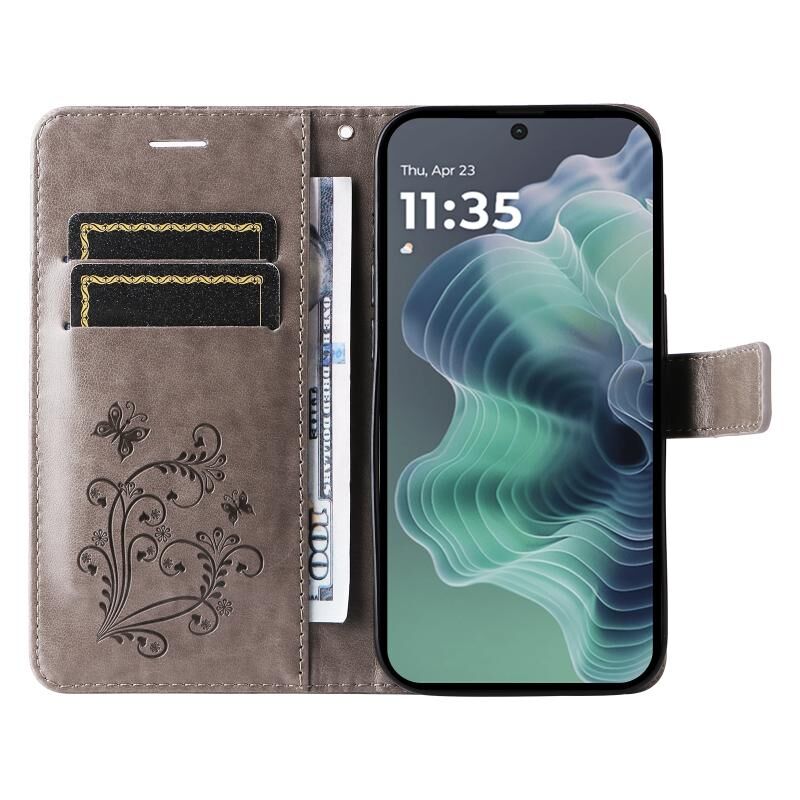Θήκη τηλεφώνου από δέρμα με σχέδιο 3D πεταλούδας σε ανάγλυφο για Motorola Moto G35 (Μωβ)