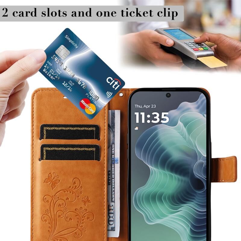 Θήκη τηλεφώνου από δέρμα με σχέδιο 3D πεταλούδας σε ανάγλυφο για Motorola Moto G35 (Μωβ)
