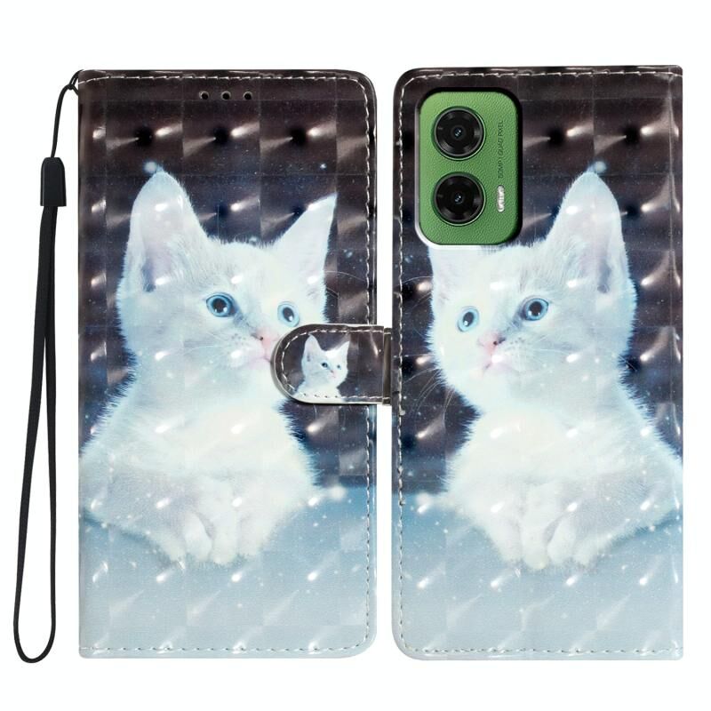 Θήκη κινητού τηλεφώνου από δέρμα με 3D σχέδιο για Motorola Moto G35 (3D Ροζ Μπλε Μάρμαρο)