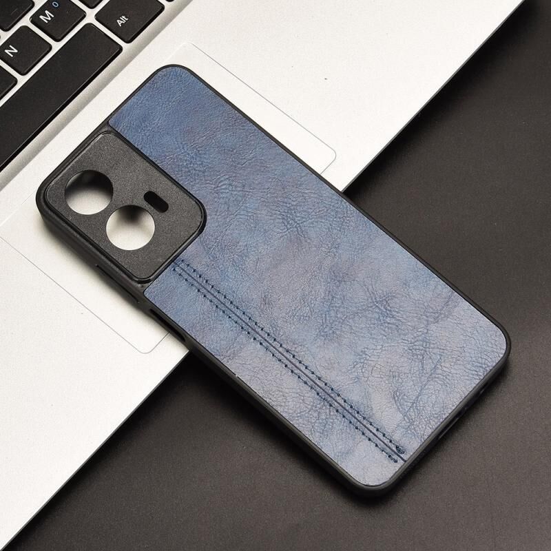 Για Motorola Moto G35 5G Αγελάδα μοτίβο ραπτικής τσάντα τσάντα τηλέφωνο υπόθεση (μπλε)