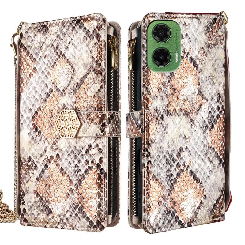 Θήκη κινητού τηλεφώνου Motorola Moto G35 5G, δερμάτινη με υφή φιδιού και λαβή χιαστί (Λευκό)