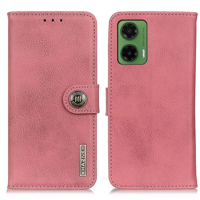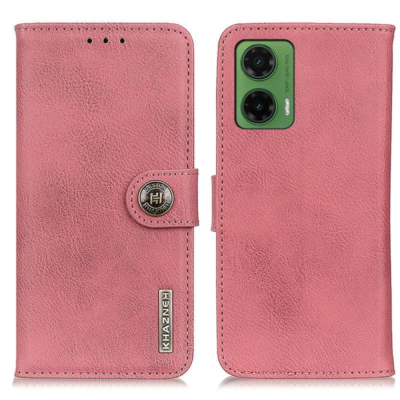 Θήκη τηλεφώνου από δέρμα με υφή δέρματος αγελάδας KHAZNEH για Motorola Moto G35 5G (ρόζ)