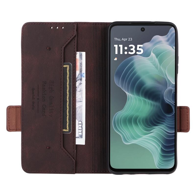 Για Motorola Moto G35 5G Μαγνητικό κούμπωμα Δερμάτινη θήκη τηλεφώνου (καφέ)