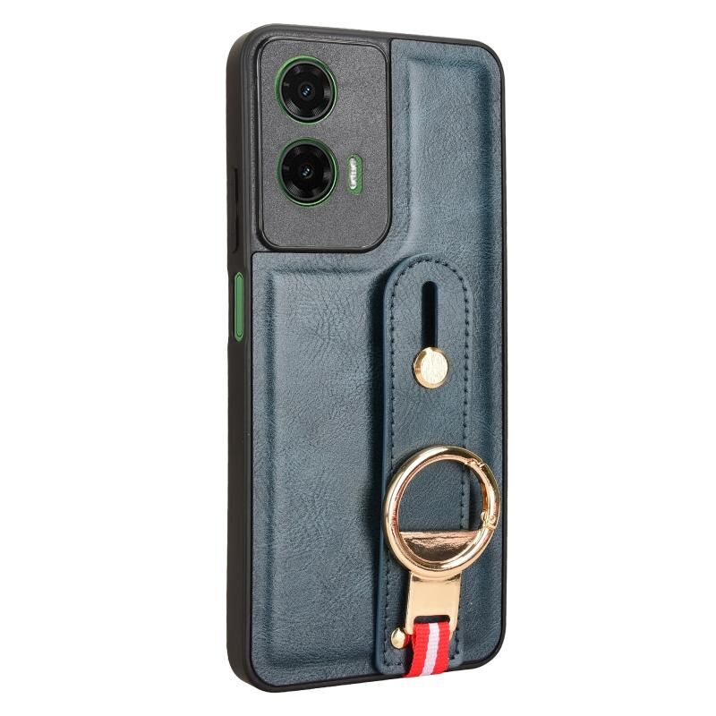 Για Motorola Moto G35 5G Wristband δέρμα πίσω θήκη τηλεφώνου (μπλε)