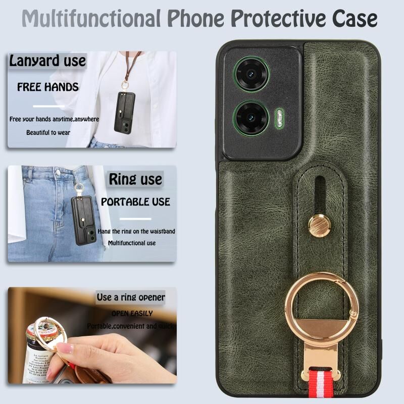 Για Motorola Moto G35 5G Wristband δέρμα πίσω θήκη τηλεφώνου (πράσινο)