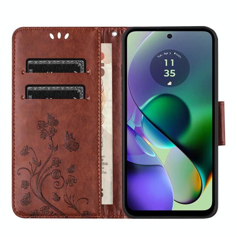 Για Motorola Moto G35 πεταλούδα λουλούδι μοτίβο Flip δέρμα τηλέφωνο υπόθεση (καφέ)