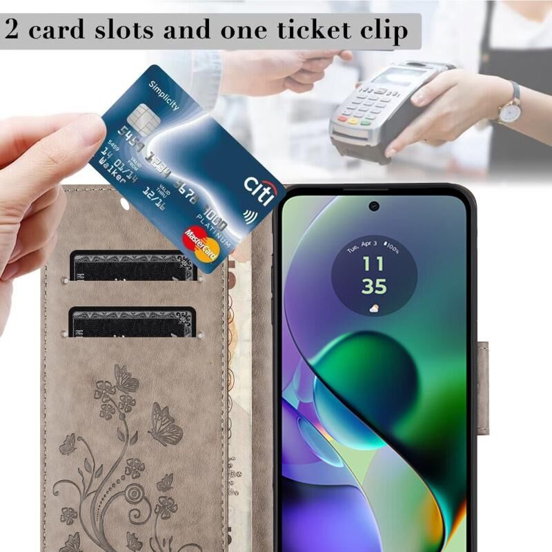 Για Motorola Moto G35 πεταλούδα λουλούδι μοτίβο Flip δέρμα τηλέφωνο υπόθεση (γκρι)