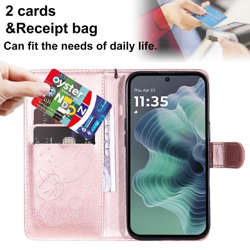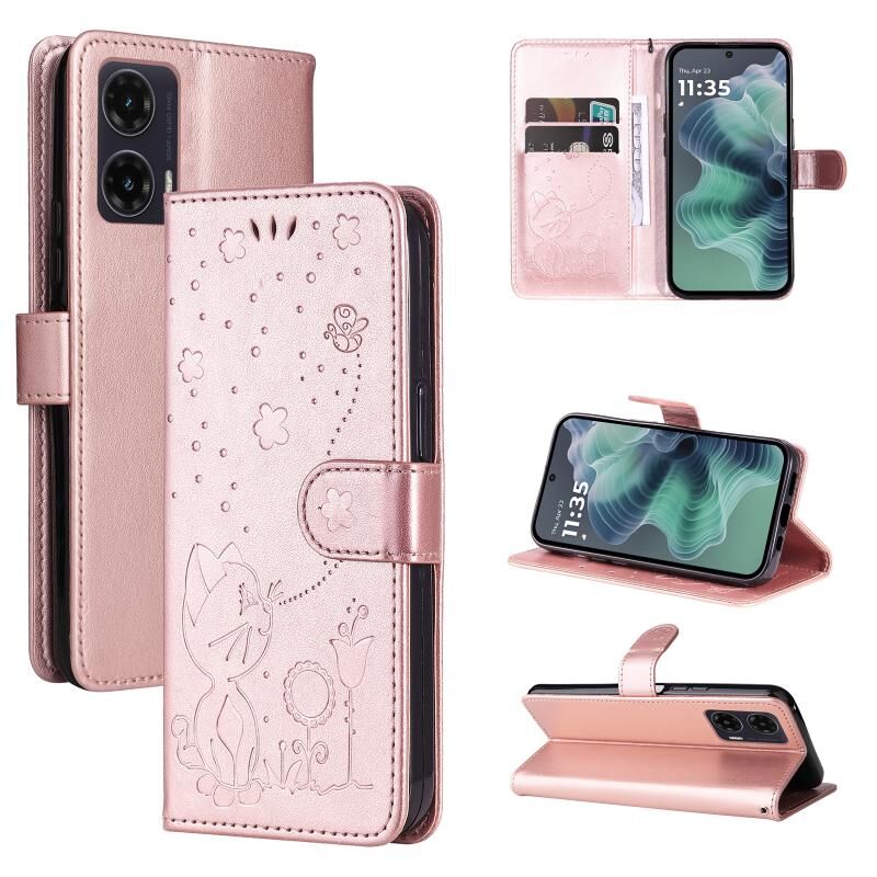Θήκη τηλεφώνου από δέρμα με ανάγλυφο σχέδιο γάτας και μέλισσας για Motorola Moto G35 (Κόκκινο)