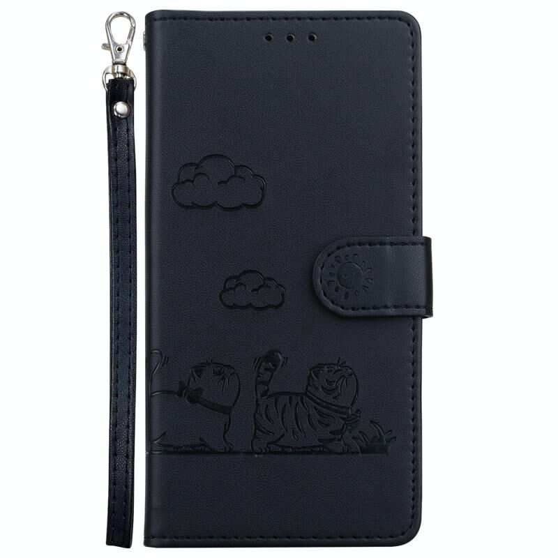 Θήκη τηλεφώνου από δέρμα με χαριτωμένες γάτες RFID για Motorola Moto G35 (Χρυσό Ρόδι)
