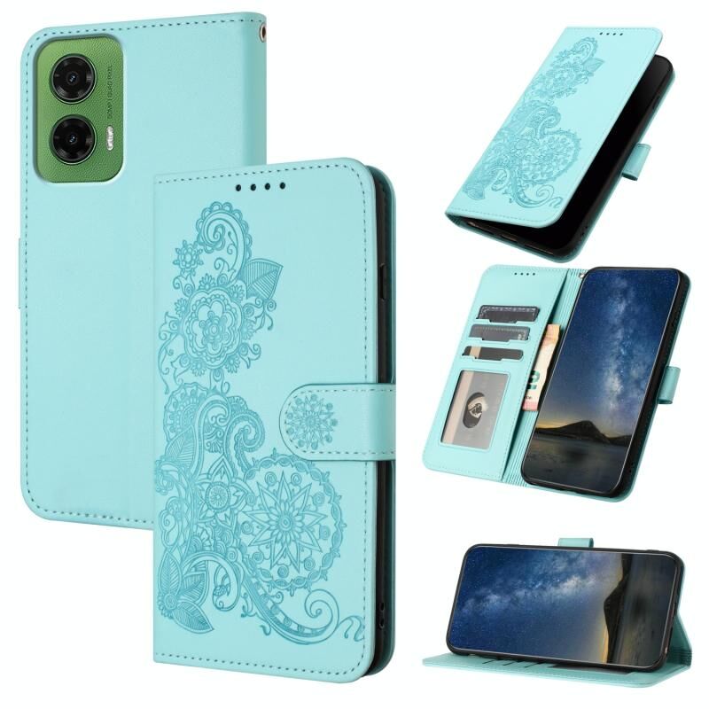 Για Motorola Moto G35 Datura λουλούδι ανάγλυφο Flip δερμάτινη θήκη τηλεφώνου (γαλάζιο)