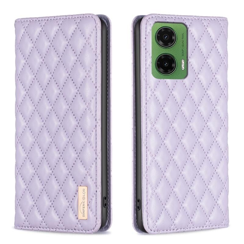 Για Motorola Moto G35 Diamond Lattice Μαγνητική δερμάτινη θήκη Flip Phone Case (μωβ)
