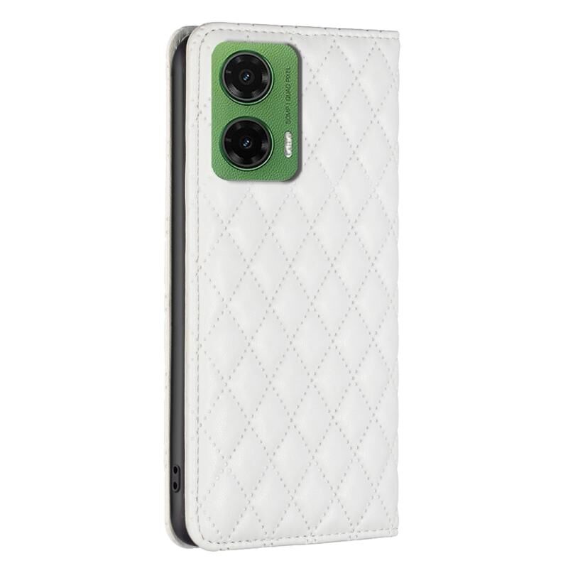 Για Motorola Moto G35 Diamond Lattice Μαγνητική δερμάτινη θήκη Flip Phone Case (Λευκό)