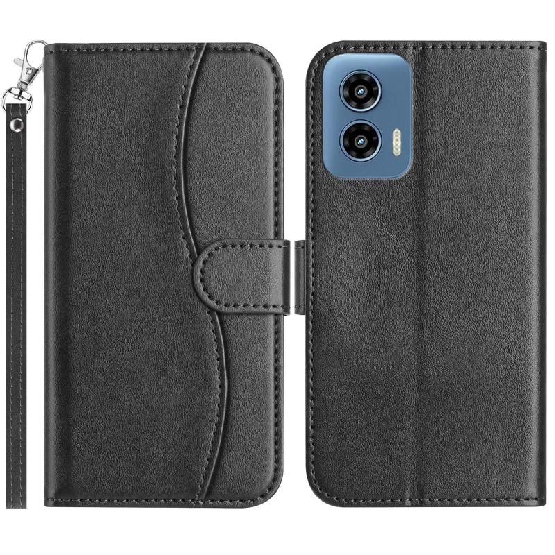 For Motorola Moto G35 Dual-Folded S-shape Leather Phone Case(Black)