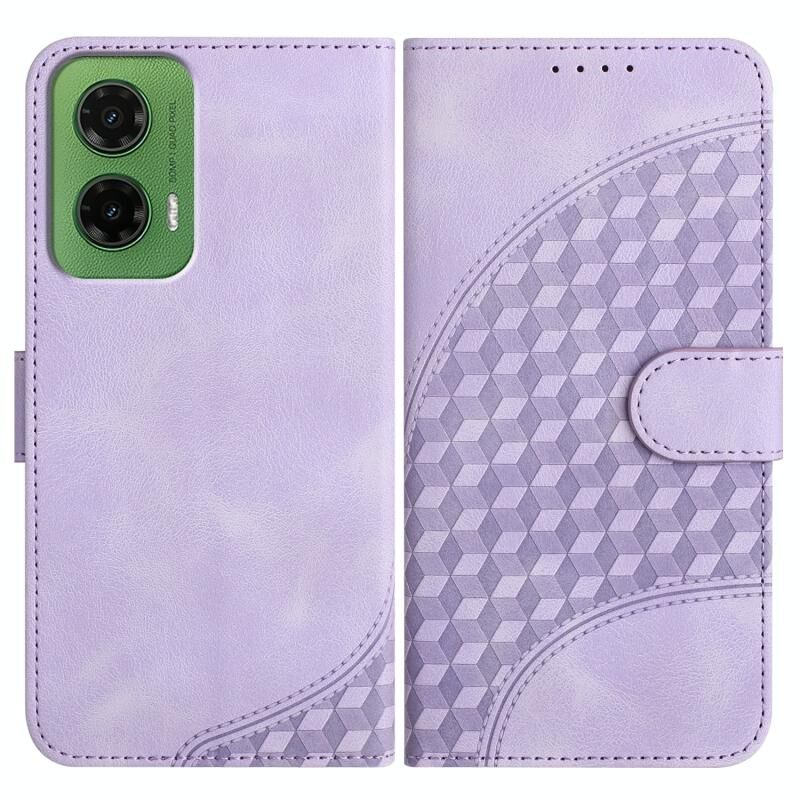 Θήκη δερμάτινη για Motorola Moto G35 με ανάγλυφο σχέδιο κεφαλής ελέφαντα και κορδόνι (Ανοιχτό Μωβ)