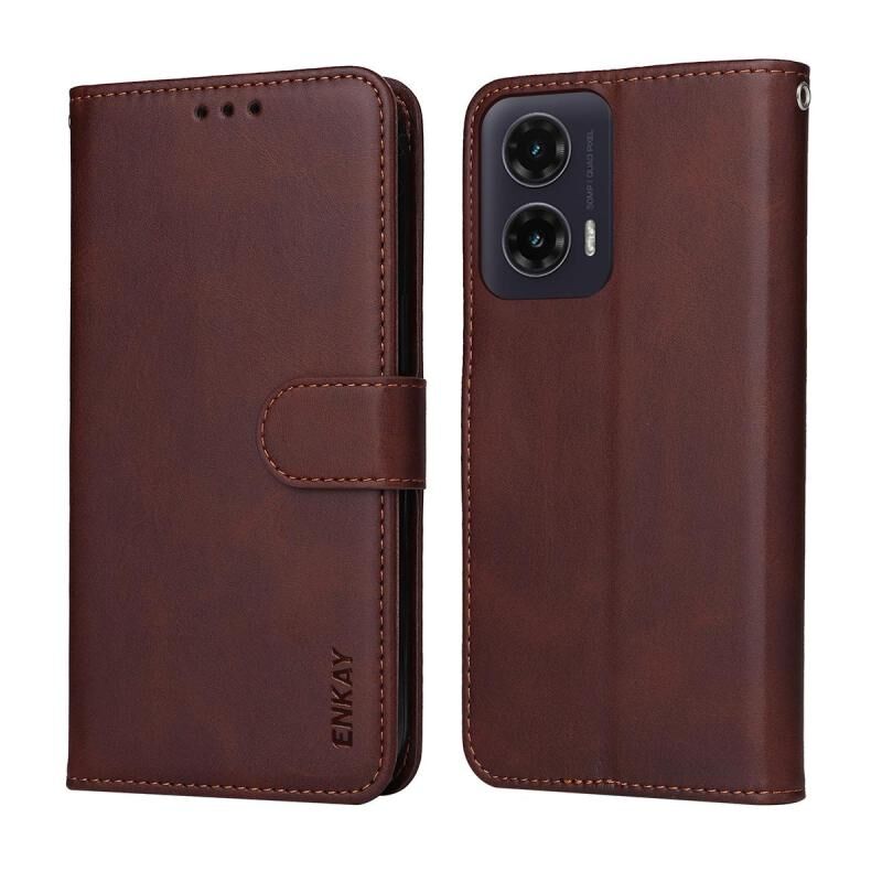Θήκη κινητού τηλεφώνου Motorola Moto G35 ENKAY με κάρτες, δέρμα μοσχαριού με υφή (Ροζ) (ENKAY) και προστατευτική μεμβράνη οθόνης. (Κόκκινο)