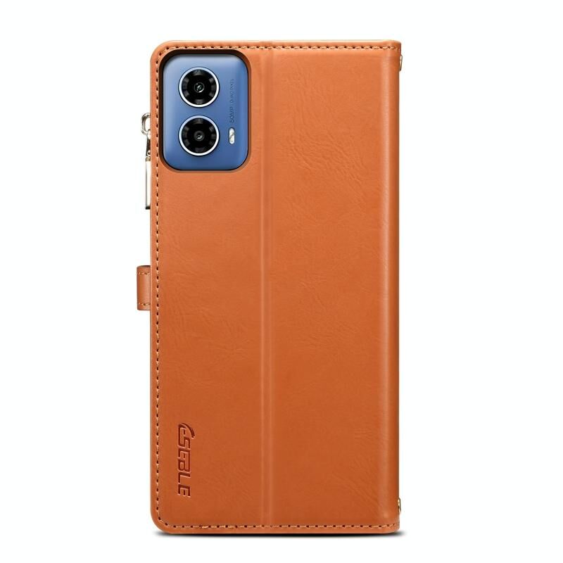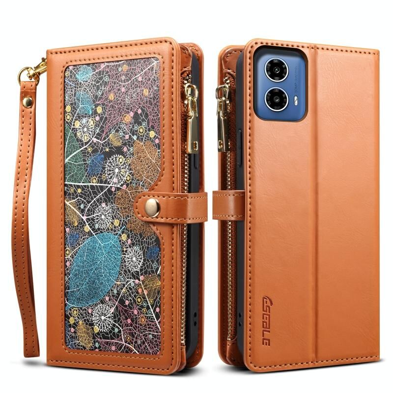 Για Motorola Moto G35 Θήκη Δερμάτινη με RFID, Πορτοφόλι με Φερμουάρ και Λουρί Λαιμού Σειράς Star (Καφέ) (ESEBLE)