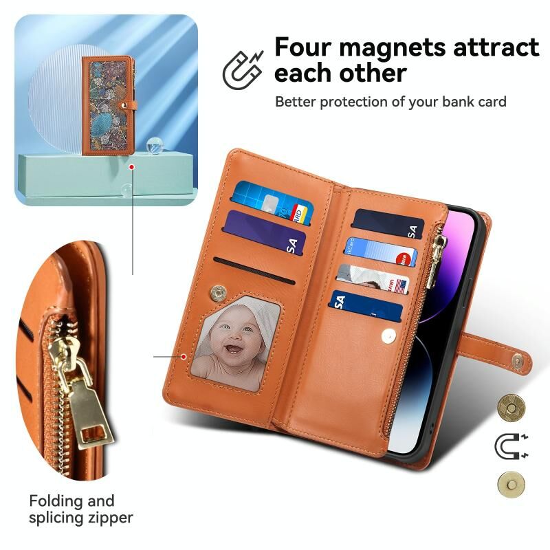 4. Πορτοφόλι με Φερμουάρ: Υπερπολλαπλές υποδοχές καρτών μπορούν να χωρέσουν πολλές κάρτες. Το άνοιγμα και το κλείσιμο του διαμερίσματος με φερμουάρ προστατεύει τα χρήματά σας. Άνετο και πρακτικό για να βγαίνετε έξω με μια τσάντα κινητού!