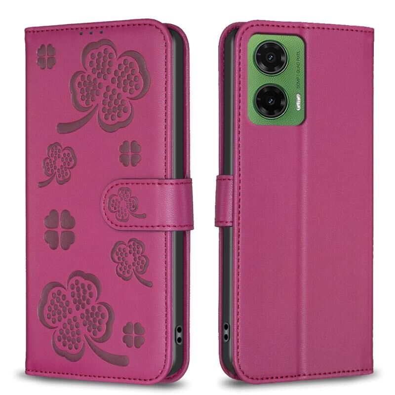 Για Motorola Moto G35 τετράφυλλο ανάγλυφη δερμάτινη θήκη τηλεφώνου (Rose Red)