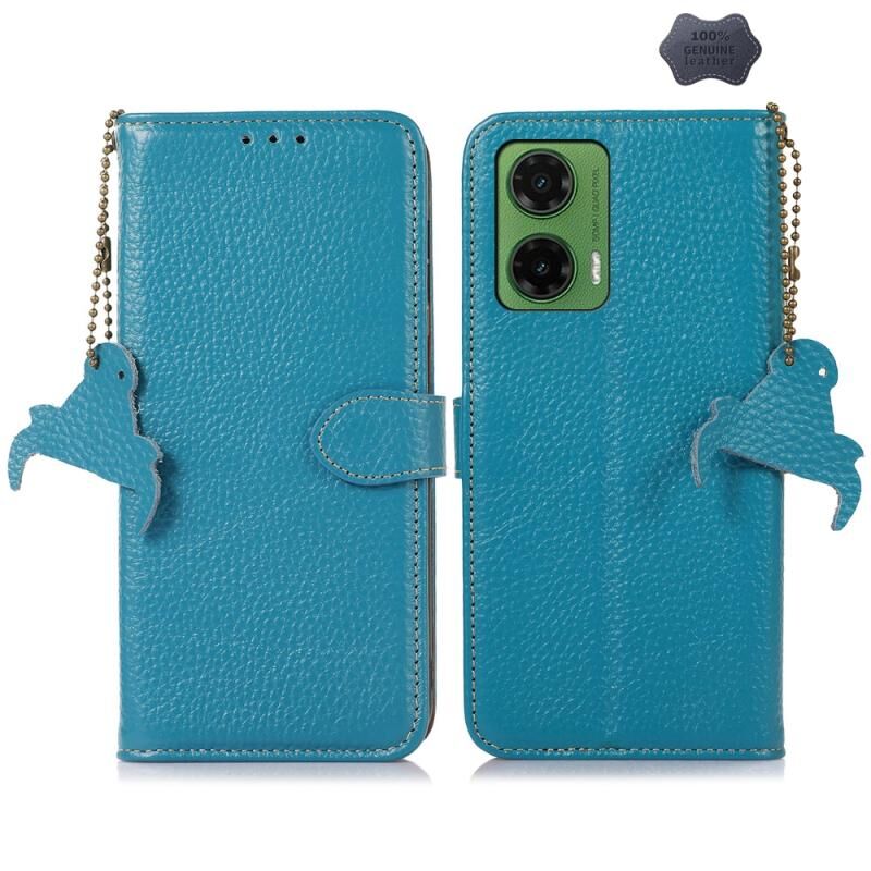Θήκη τηλεφώνου από γνήσιο δέρμα με υφή Litchi για Motorola Moto G35, με προστασία RFID (Μπλε)