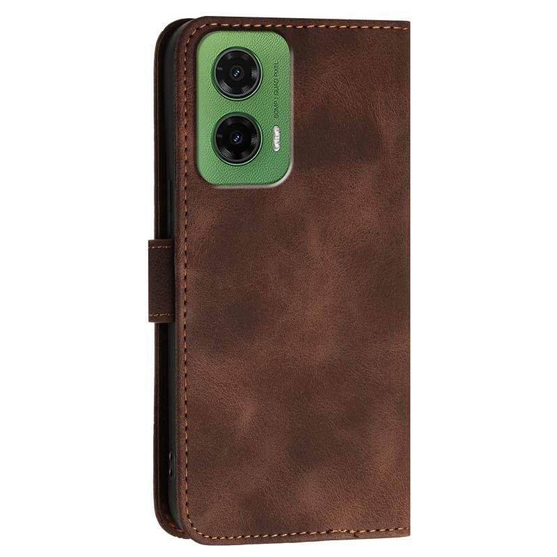 Θήκη κινητού τηλεφώνου δερμάτινη με ανάγλυφο σχέδιο Grid Butterfly για Motorola Moto G35 με κορδόνι (Καφέ)