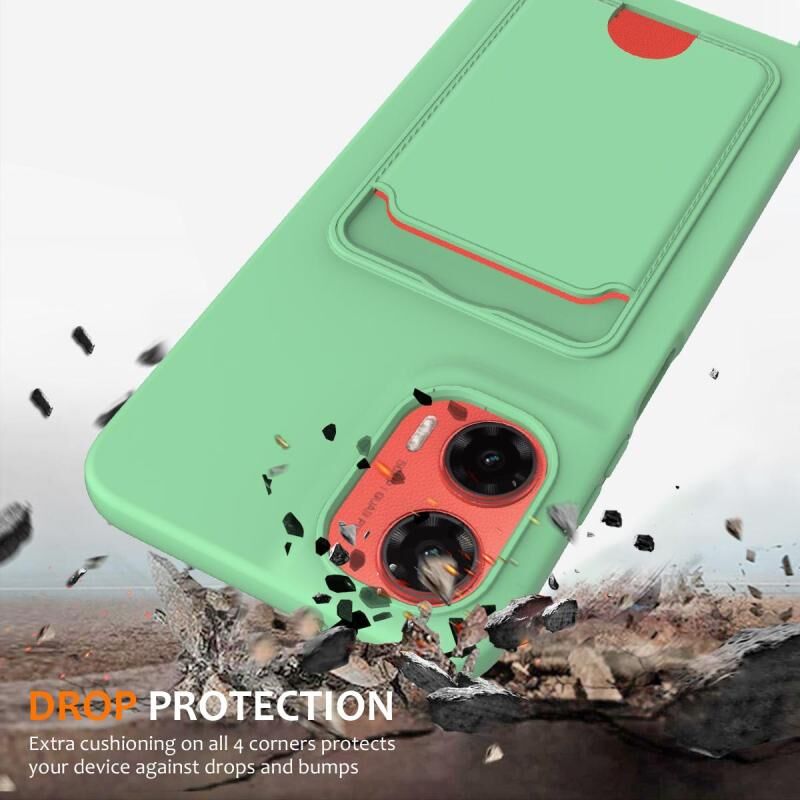 Θήκη κινητού τηλεφώνου για Motorola Moto G35 με ενσωματωμένη θήκη κάρτας, μονόχρωμη, από υγρή σιλικόνη με κορδόνι (πράσινο)