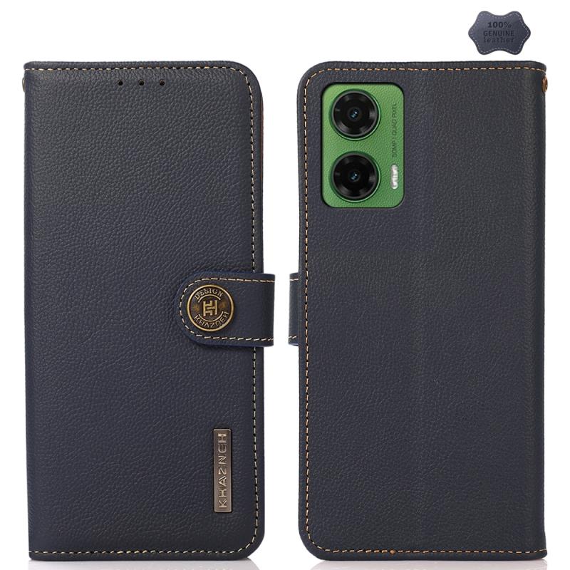 For Motorola Moto G35 KHAZNEH Custer Genuine Leather RFID Phone Case(Blue)
